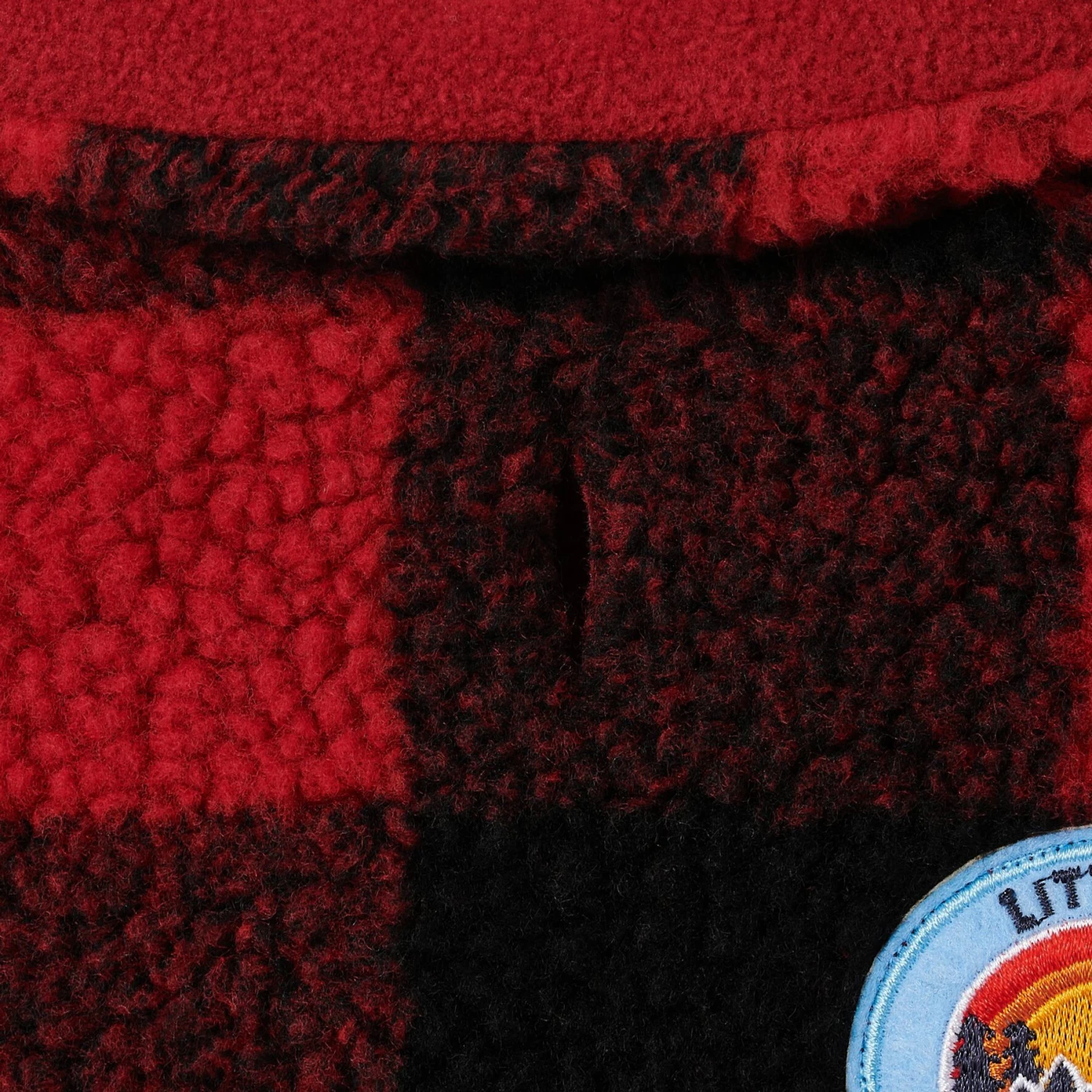 Keep your dog and cat cozy and styling. An insulated Sherpa coat is just the style the chilly weather calls for. A red plaid accent is a classic fashion forward move, and the faux pocket and embroidered patch level up the runway factor. Sherpa on the outside turns up the warmth so your pet can dress for the forecast, from the park to the playdate and back.