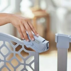 - Gate features a lightweight and durable all-metal construction—with a stylish geometric pattern that looks great in your home—for easy storage and portability.