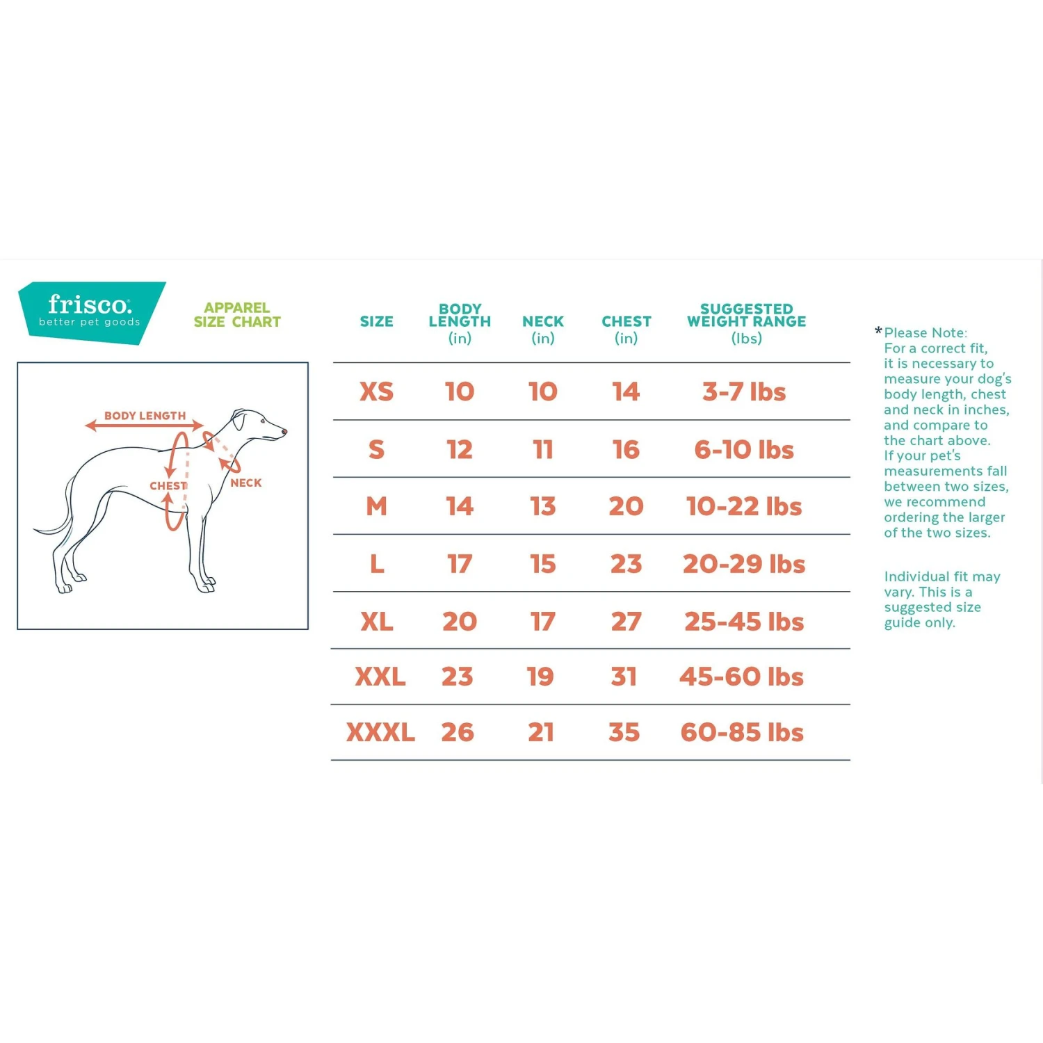 Intended to be used for short duration, under close supervision. Always supervise pet to ensure they do not destroy or ingest product. May contain small parts. Not suitable for children. Inspect regularly and replace if any part becomes damaged. For the perfect fit, measure your pet carefully when selecting a size from the Size tab. Sizing recommendations per breed are only guesstimates, since no two dogs are exactly alike.